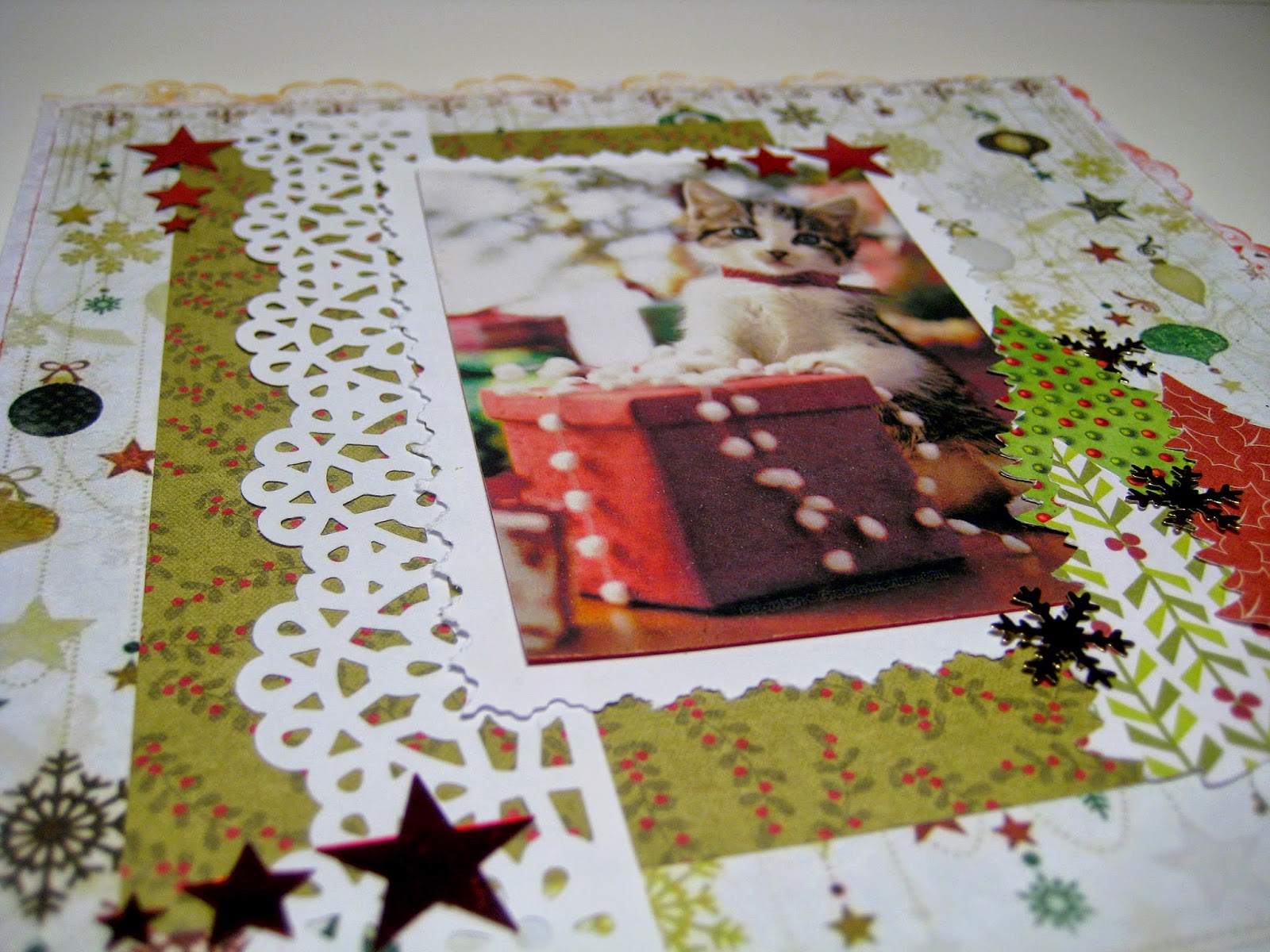 Всем привет! Сегодня хочу вам показать страничку. Это мой первый опыт по созданию скрап-странички. Ни какого альбома пока еще не делаю, а практиковаться, учиться и делать что-то новое надо!!! Очень люблю использовать в работах иллюстрации зверей... и первая страничка была посещена Новому году и замечательному коту (по мордочке похож именно на кота).
